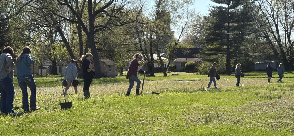 On April 6, 2026 a group of volunteers planted 25 oak trees at “Four Corners Park” which is located on the corners of Albion and Church Streets in West Salem. Three different species of Oaks were planted – White Oaks, Red Oaks, and Bur Oaks were planted at the park. Oaks are a keystone species in Illinois forests. Below are a few photos from the tree planting event.